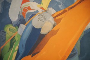 Eine ganze Reihe von Strandgut-Fundsachenbildern schließt sich an. Wie Stillleben oder Materialcollagen, hier scheint ein wenig Dada durch! Die späteren Bilder sind von der Farbgebung eher milchig und betonen die Unwirklichkeit wirklich existierender Dinge, wodurch deutlich wird, dass sie "fehl am Platze" sind.