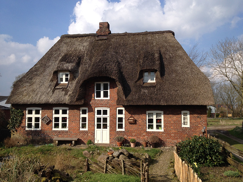 Hierzu treffen wir uns bei Heinke im Bauerngarten, der ihr entzückendes Reetdachhaus umgibt. Dass dieser noch viele Überraschungen im Laufe des Jahres für den Besucher bereit hält, lässt sich schon erahnen: überall grünt es zwischen den verschlungenen Feldsteinpfaden und -terrassen, an den Wällen und rings um den Teich. Am weitesten ist aber schon das Bärlauchfeld hinter dem kleinen Haus, das sich geschützt, im Frühjahr sonnig, im Sommer halbschattig, in einer Ecke ausgebreitet hat.