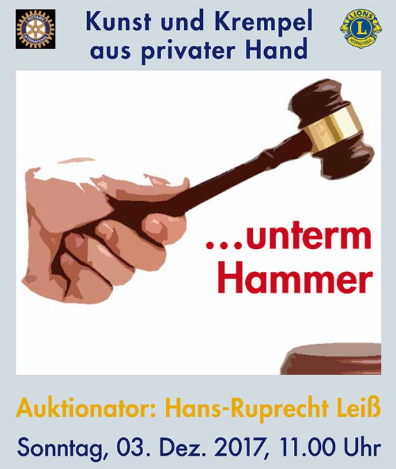 Kulturkeller, LIONS und Rotarier rufen zu einer außergewöhnlichen Auktion auf. Alle, die etwas zum Versteigern haben, können einfach bei der Auktion erscheinen und ihre „Kunst“ oder ihren „Krempel“ mitbringen.